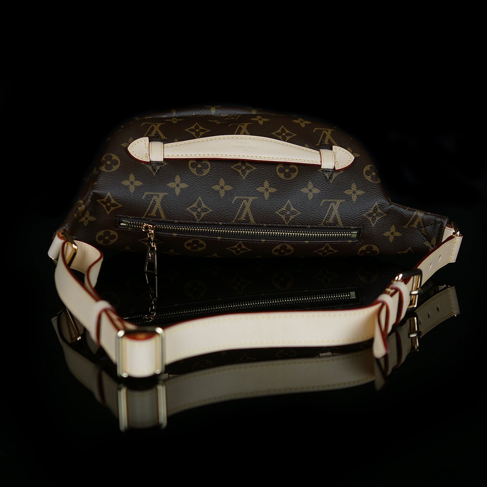 - Monogram coated canvas and natural cowhide leather