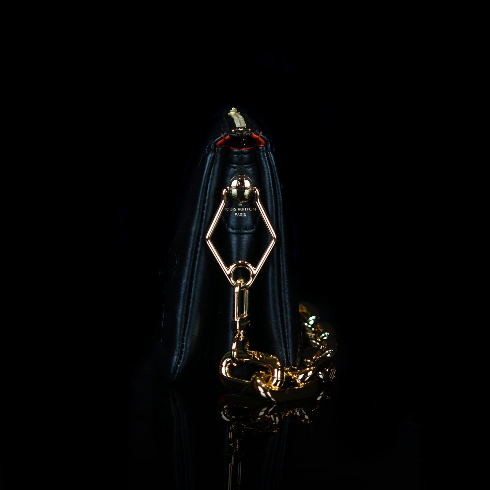 This versatile bag comes with a chunky gold-color chain and a thin leather strap, both of which are removable, allowing you to tailor your look to suit different occasions. Inside, you'll find two practical compartments that enhance its day-to-evening versatility.