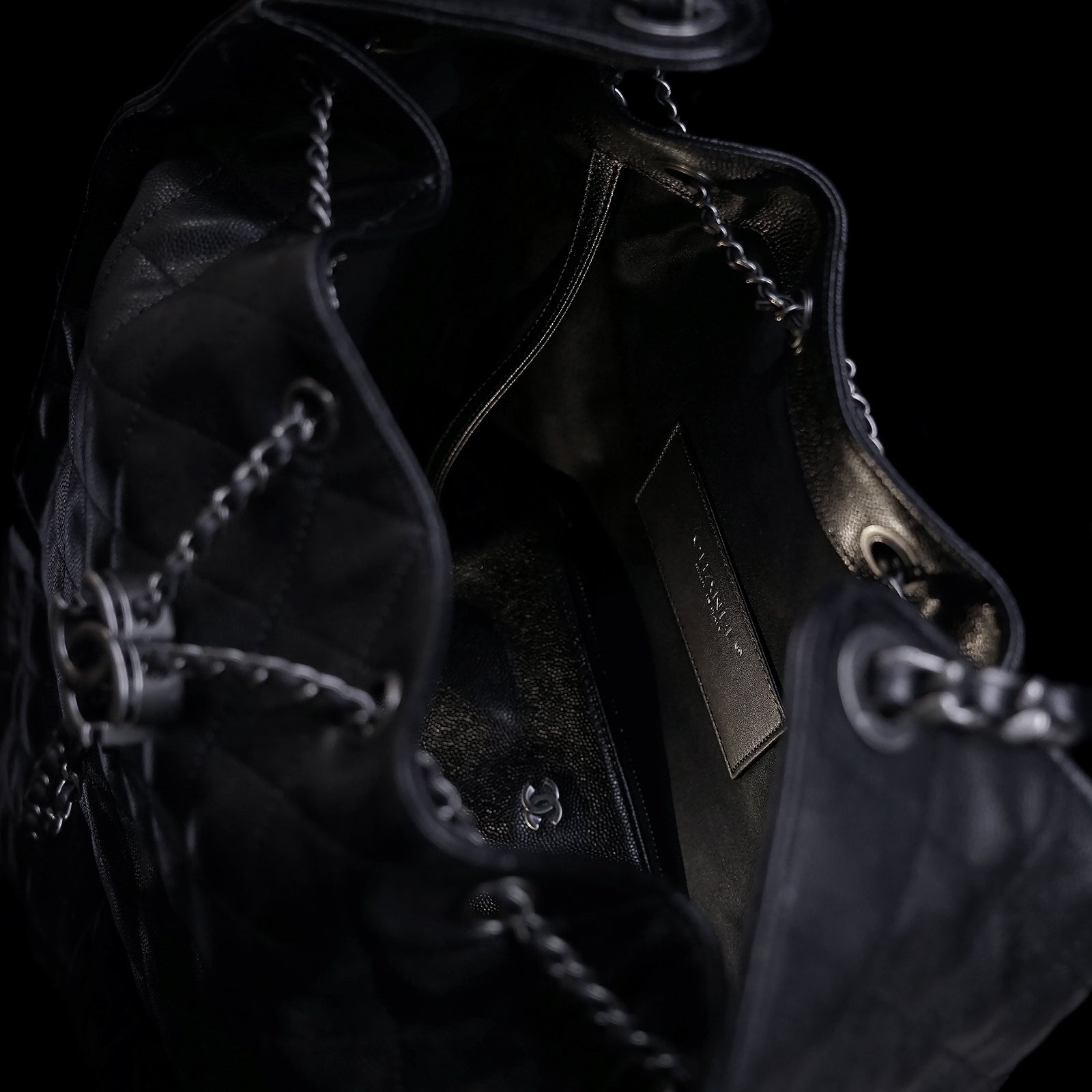 The CHANEL 25 Large Handbag is a modern expression of the House’s timeless elegance and effortless sophistication. Crafted from luxurious black grained calfskin, this statement piece features a softly structured silhouette that balances everyday practicality with iconic CHANEL style.
