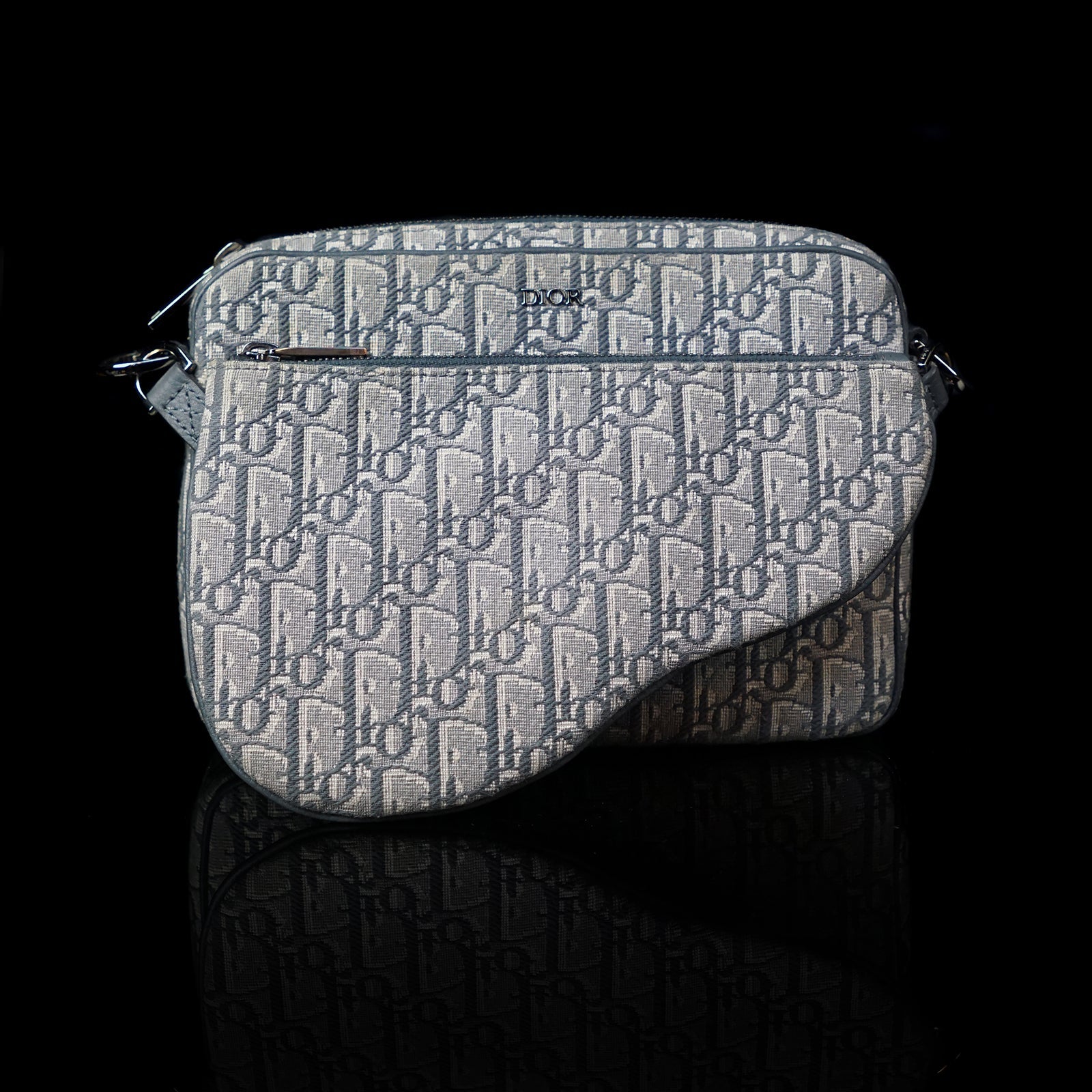 Minimalist yet undeniably iconic, the Dior Saddle Pouch in Grey Grained Calfskin is a statement of modern elegance. Crafted from supple grey grained calfskin, this sleek pouch features the signature Saddle silhouette, accentuated by a magnetic flap closure and finished with a striking 'D' stirrup in brushed ruthenium-finish metal. The monochrome design exudes refinement and versatility, making it an essential for any luxury wardrobe.