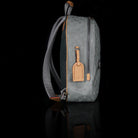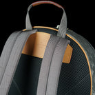 Notable features include natural leather vachetta trim for a touch of classic appeal, a reinforced top handle for easy handling, a convenient front zipper pocket, and adjustable canvas shoulder straps for personalized comfort. The wrap-around zipper reveals a spacious grey fabric interior adorned with practical flat pockets, making it a versatile choice for your daily essentials.