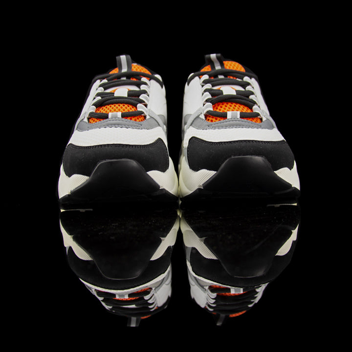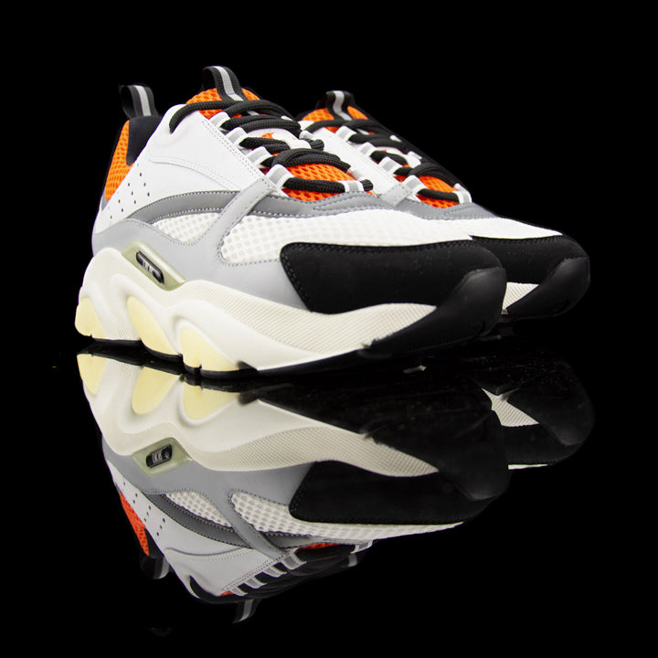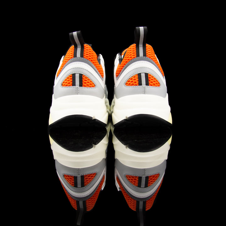 - Red technical knit and white and grey calfskin, Black nubuck toe