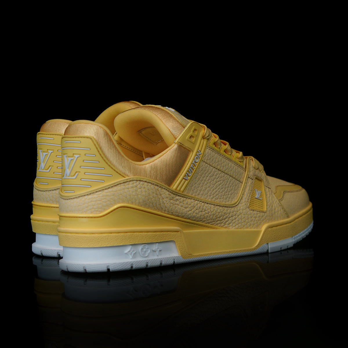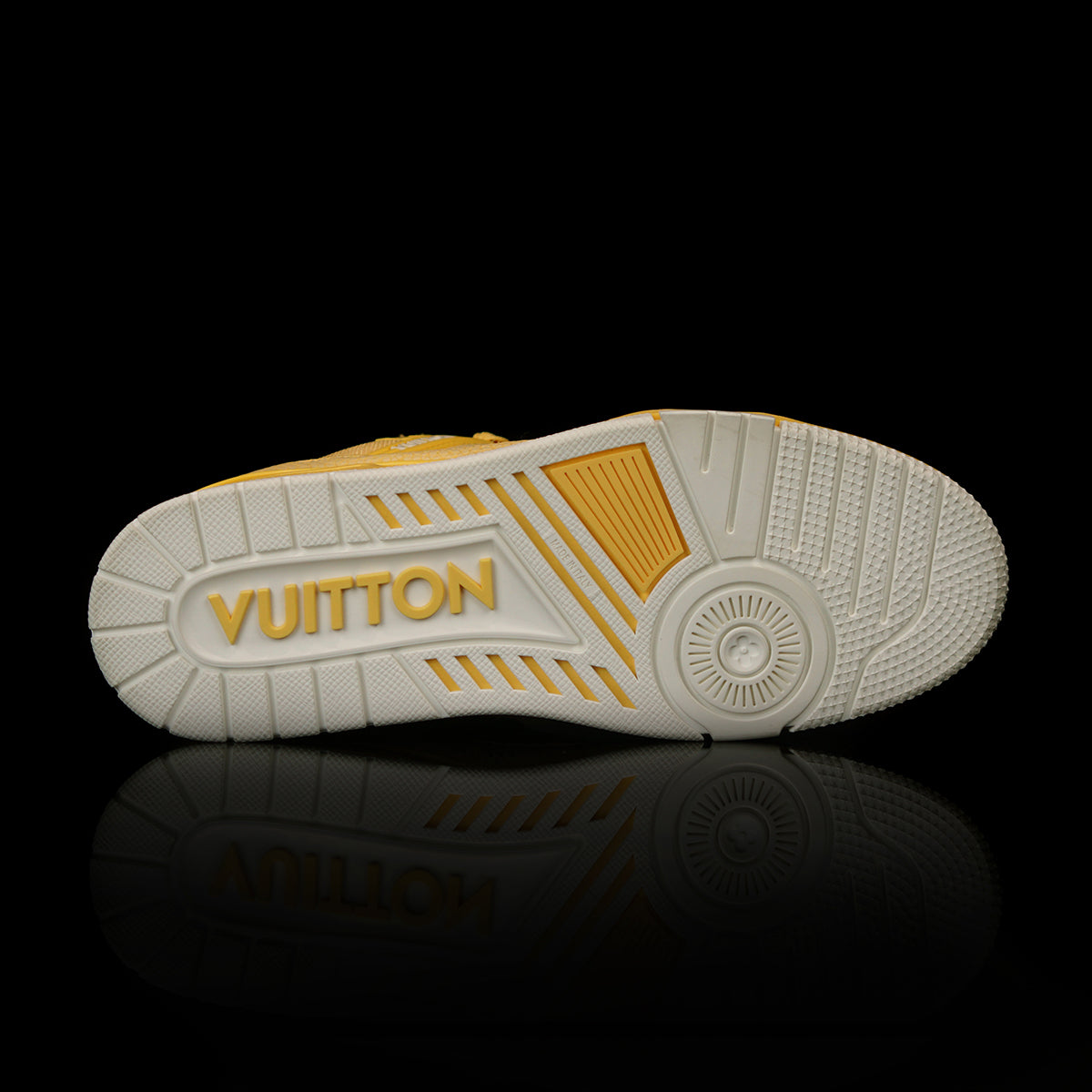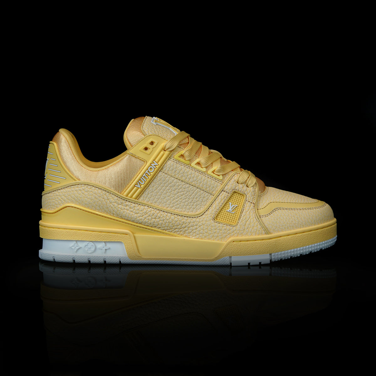 Presenting a vibrant rendition of the LV Trainers, crafted from grained calf leather and now offered in women's sizes. Originally conceived by Virgil Abloh, this cult classic draws inspiration from vintage basketball footwear. Its intricately crafted upper, requiring seven hours of meticulous stitching, is paired with a technical outsole embellished with Monogram Flowers, epitomising the fusion of luxury and sporty aesthetics