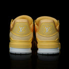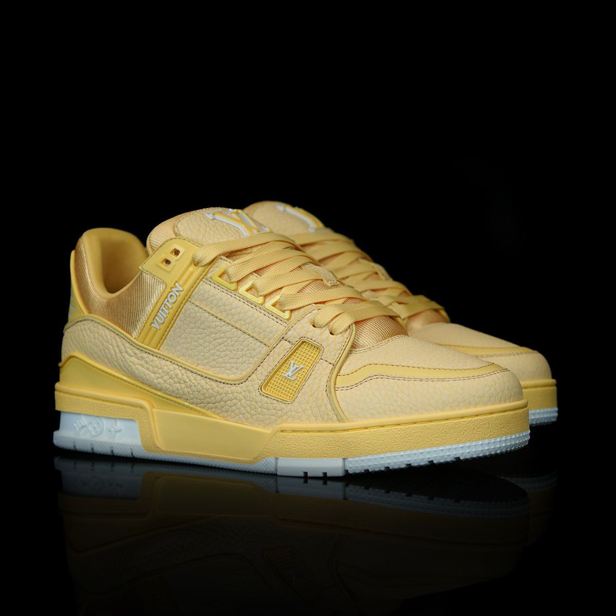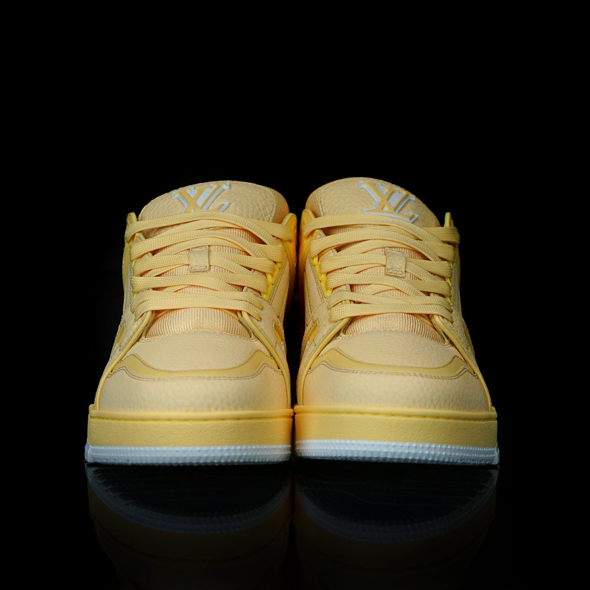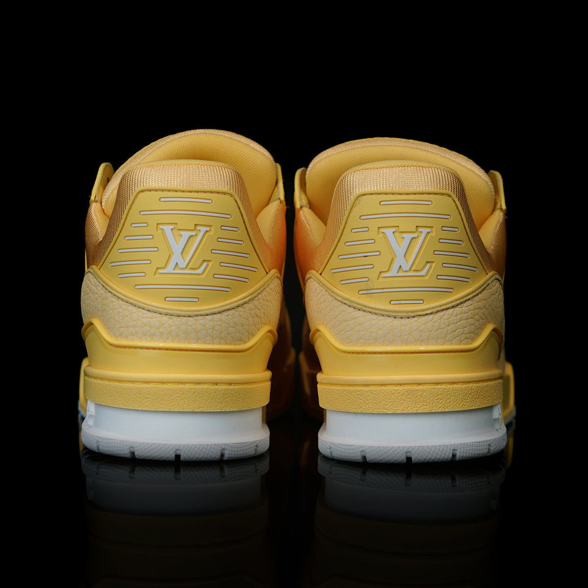 Presenting a vibrant rendition of the LV Trainers, crafted from grained calf leather and now offered in women's sizes. Originally conceived by Virgil Abloh, this cult classic draws inspiration from vintage basketball footwear. Its intricately crafted upper, requiring seven hours of meticulous stitching, is paired with a technical outsole embellished with Monogram Flowers, epitomising the fusion of luxury and sporty aesthetics