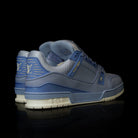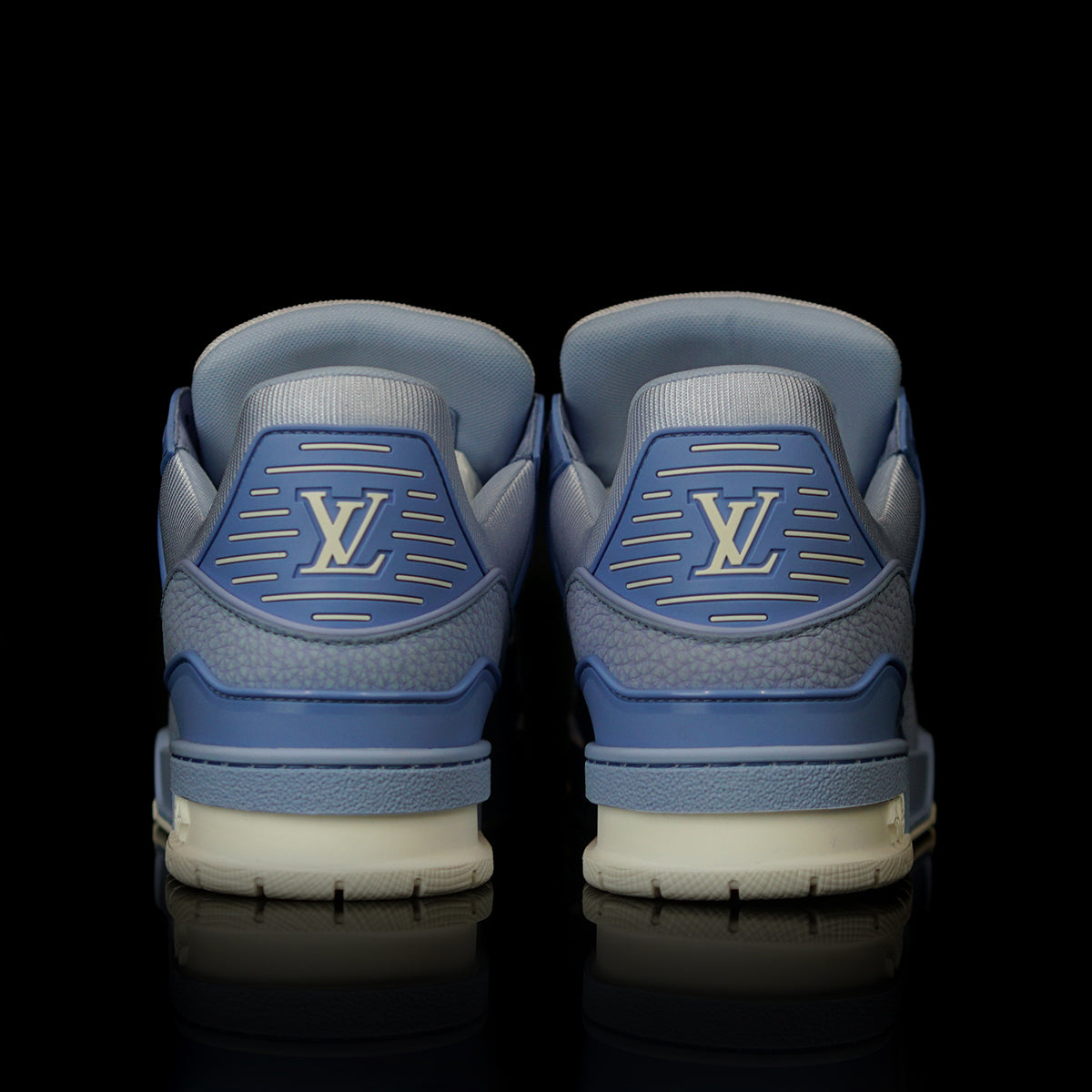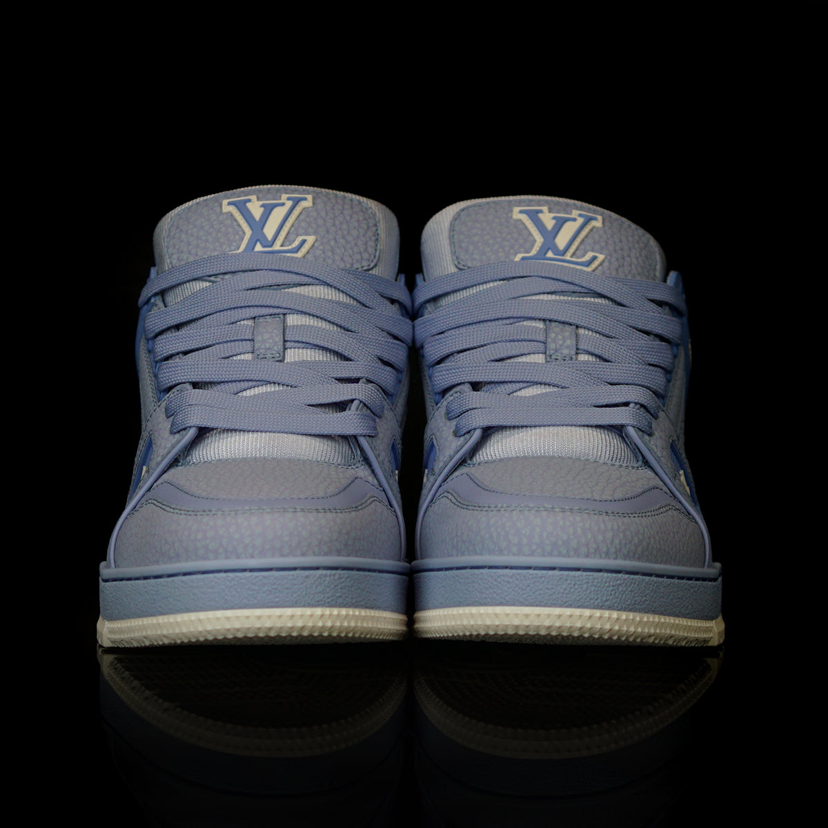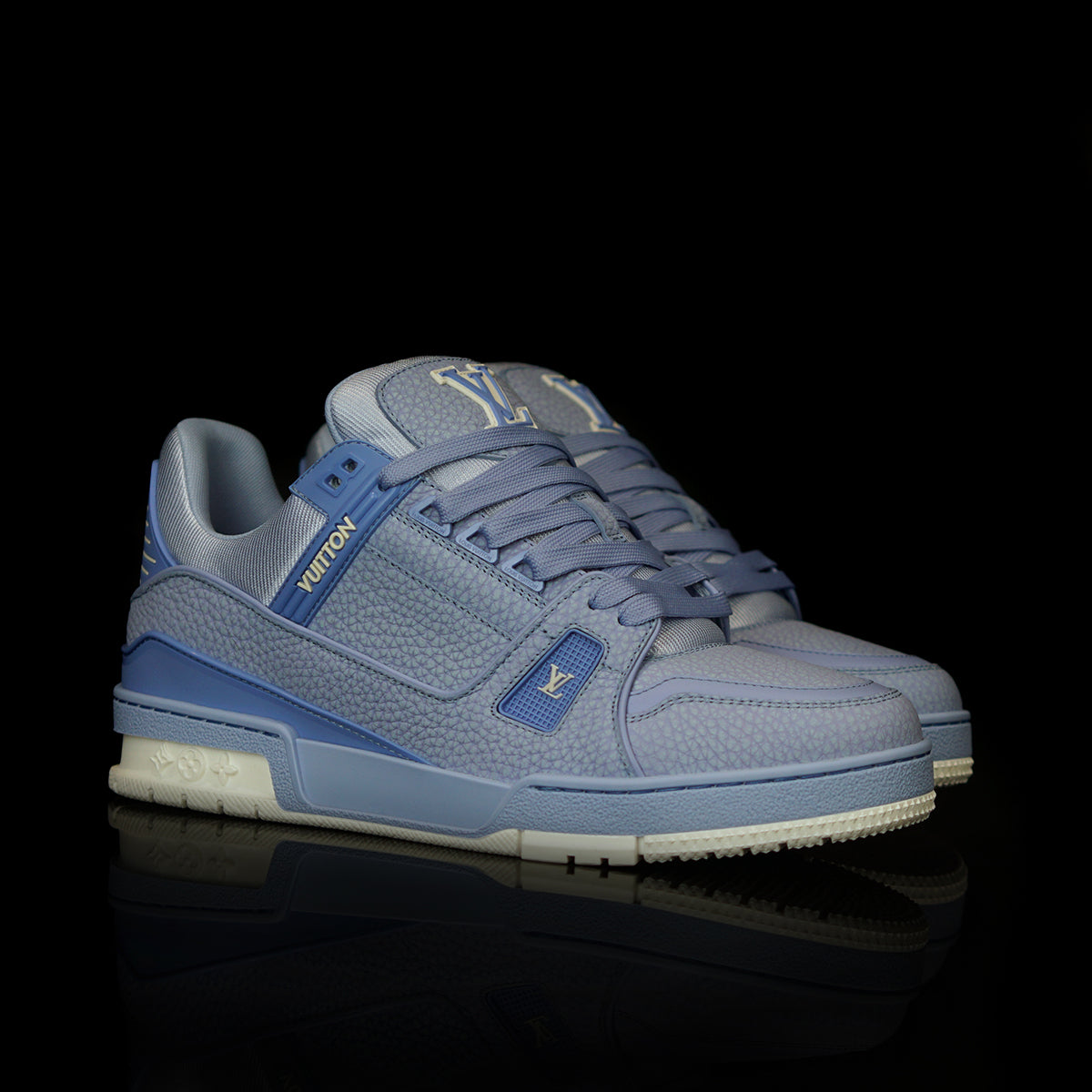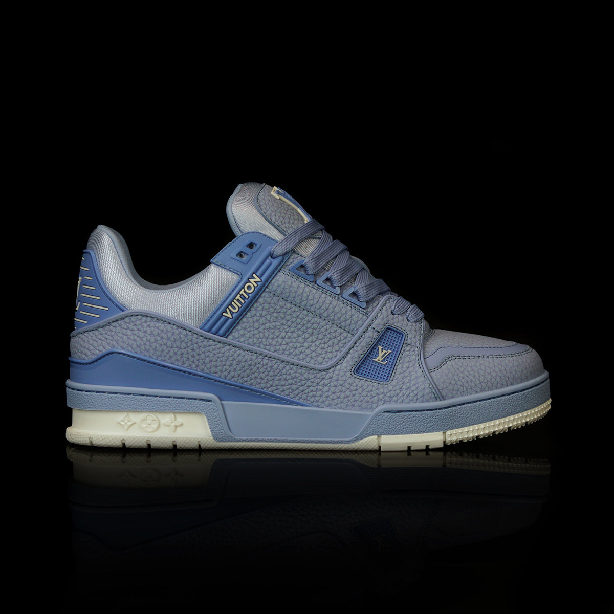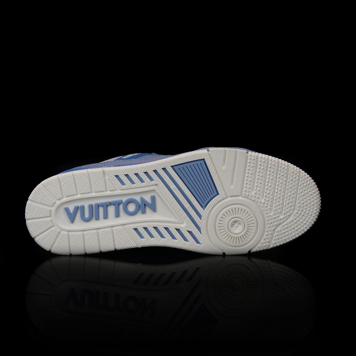 Presenting a vibrant rendition of the LV Trainers, crafted from grained calf leather and now offered in women's sizes. Originally conceived by Virgil Abloh, this cult classic draws inspiration from vintage basketball footwear. Its intricately crafted upper, requiring seven hours of meticulous stitching, is paired with a technical outsole embellished with Monogram Flowers, epitomising the fusion of luxury and sporty aesthetics