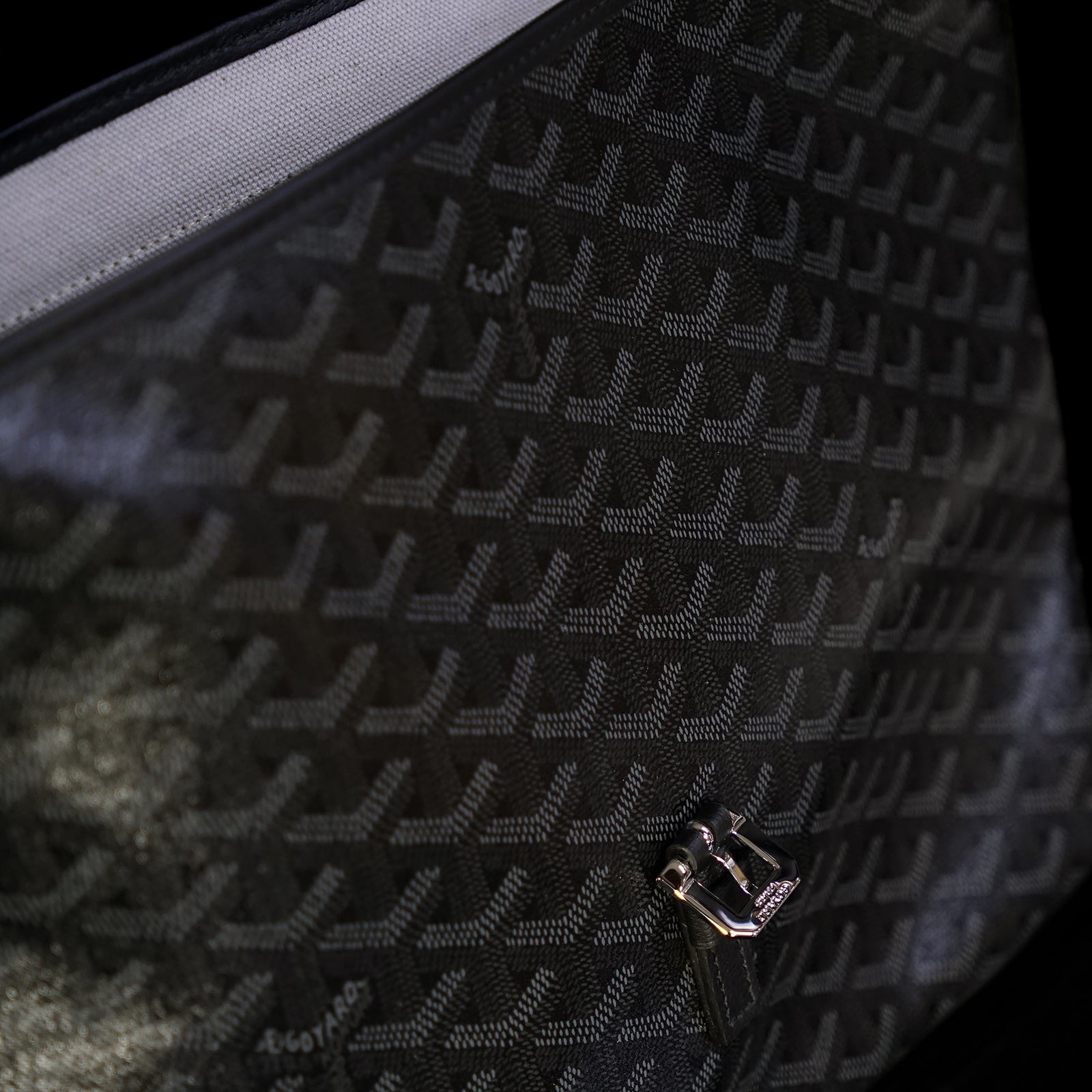 - Material: Signature Goyardine canvas with chevroches calfskin leather trim and linen/cotton interior lining.