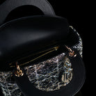 - Material: Black tweed with gold-tone metallic thread, featuring the Cannage motif