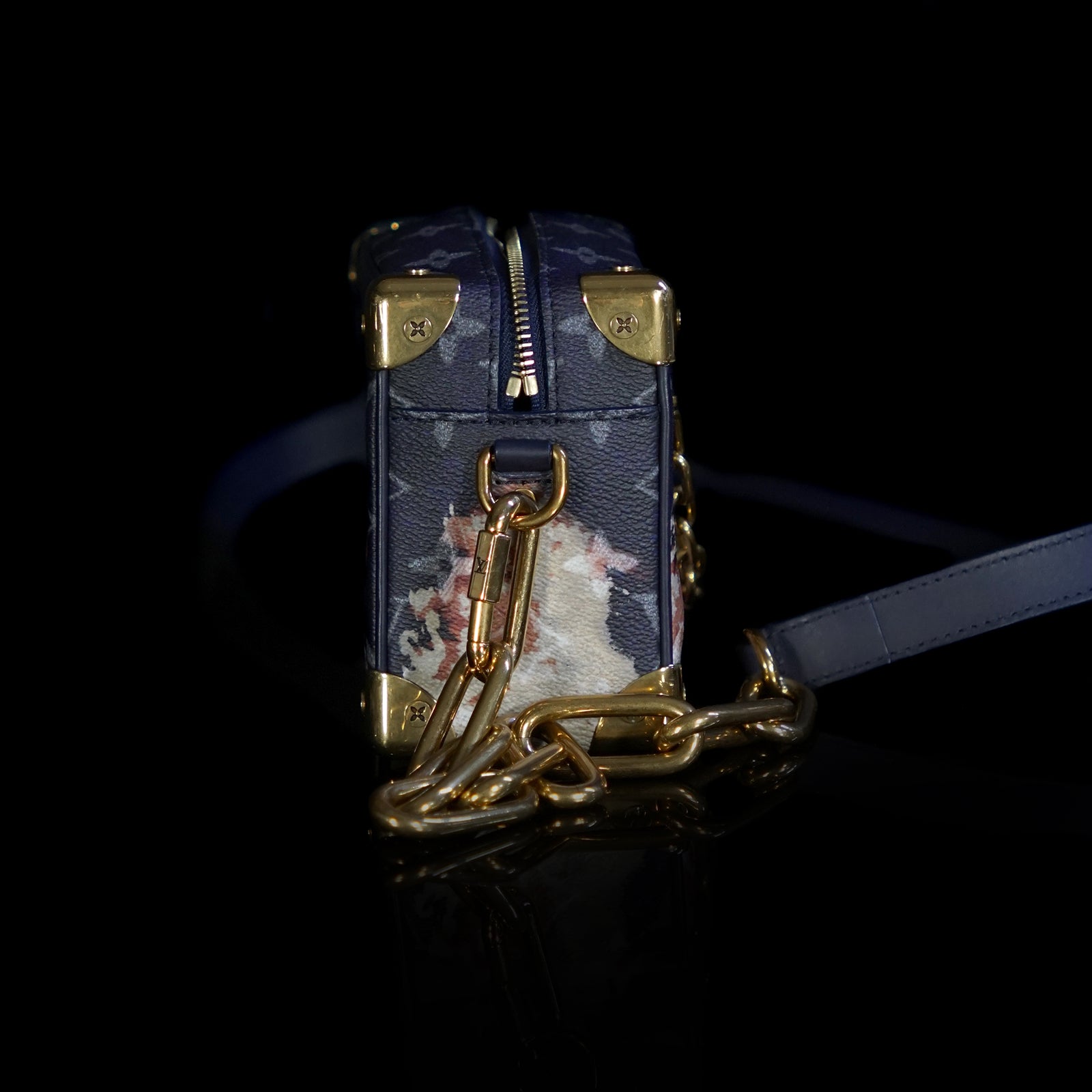 The Louis Vuitton Mini Soft Trunk in Ink Blue reinterprets the House’s iconic trunk silhouette with a modern, supple feel — offering a compact yet stylish way to carry essentials. Crafted from Monogram Bleach coated canvas with aged gold-tone hardware, this mini trunk fuses classic LV heritage with contemporary design flair.