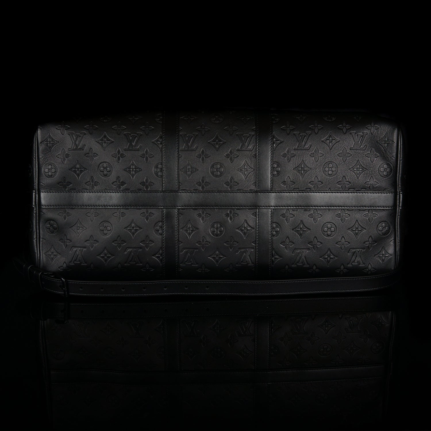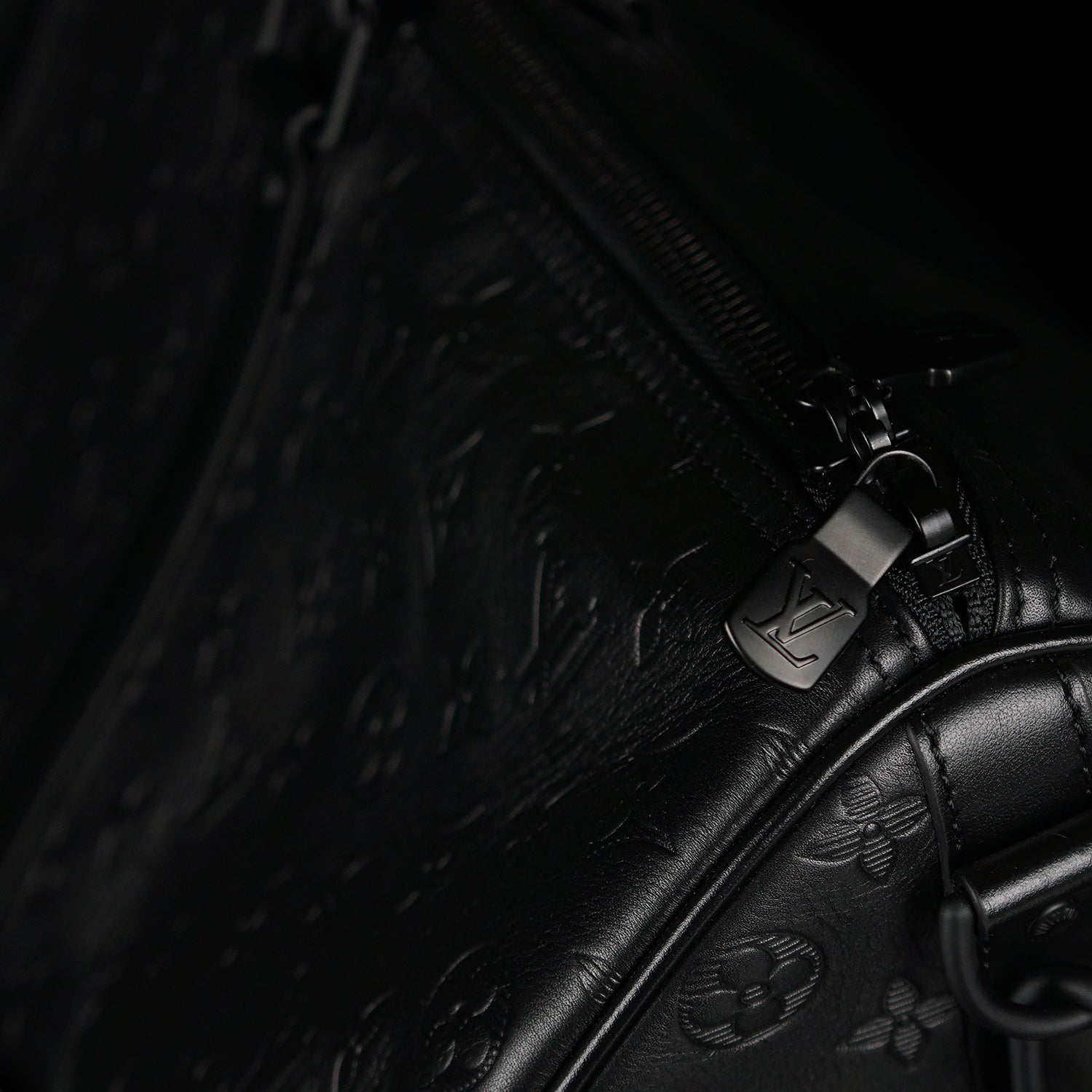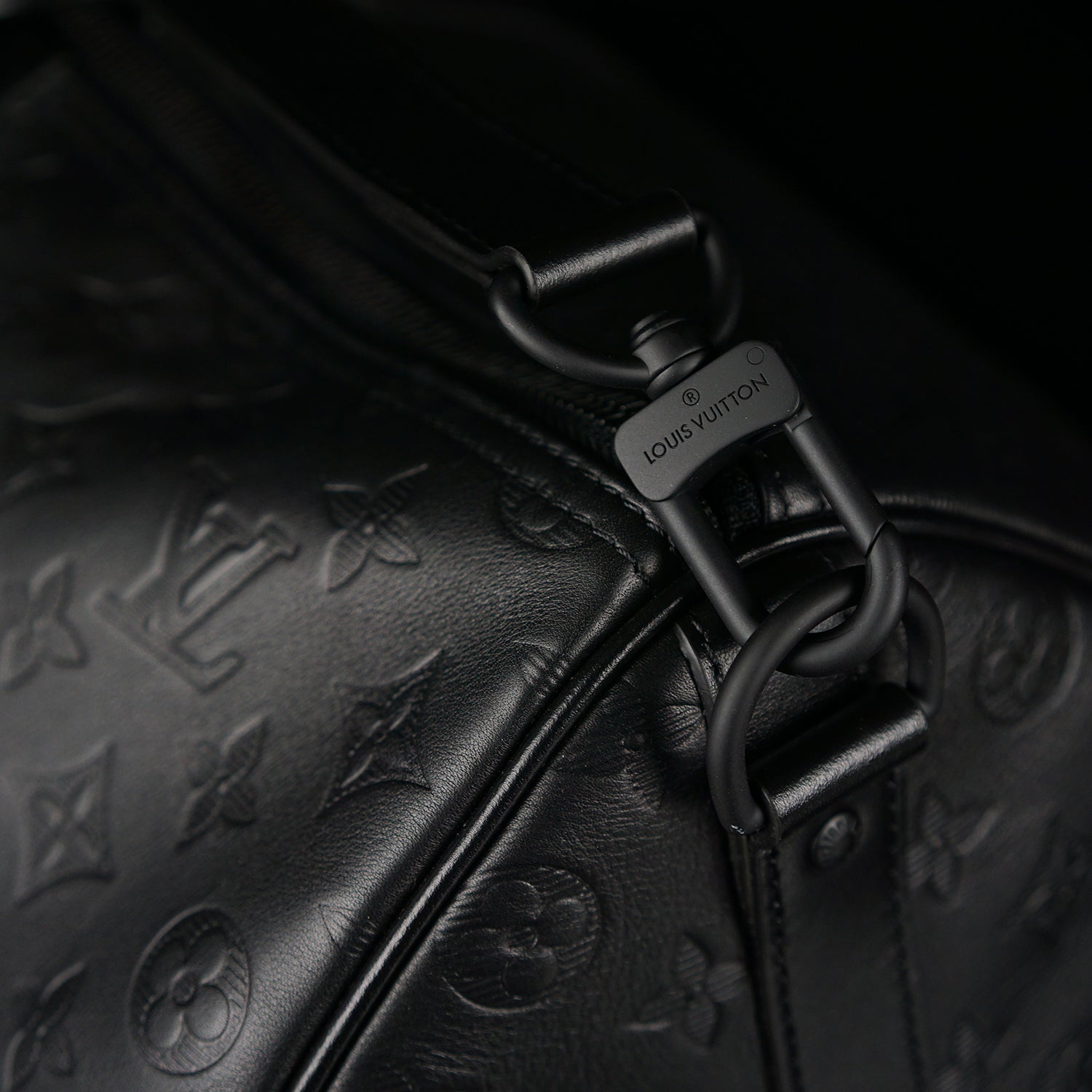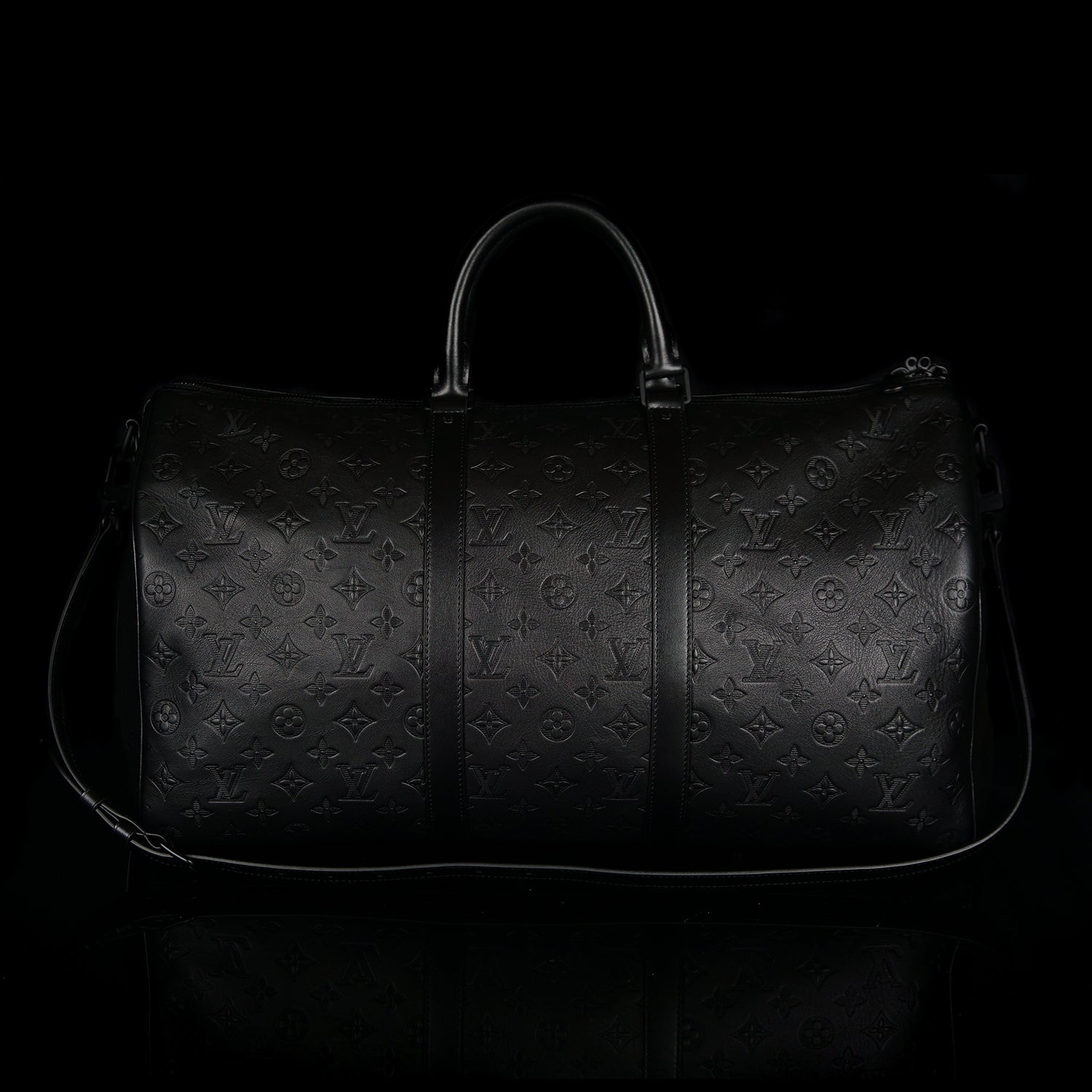 A Louis Vuitton icon, the Keepall Bandoulière 50 is revisited in Monogram Shadow leather, embossed all over with the Monogram pattern. The minimalist design is complemented by matte black hardware. Launched in the 1930s, the Keepall was the original soft travel bag and remains as elegant as ever, with the cabin size ideal for short trips.